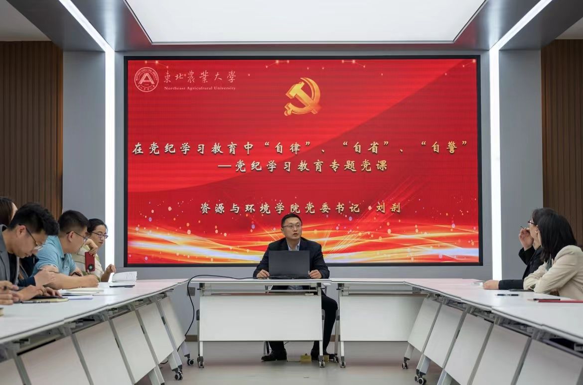学院党委书记刘刹讲授题为在党纪学习教育中“自律”、“自省”、“自警”的党纪学习教育专题党课,从“三个问题”出发,聚焦对党规党纪学习“不上心的问题”、“不了解的问题”、“不掌握的问题”入手,做到学纪、知纪、明纪、守纪,并传达违反政治纪律的典型案例通报。