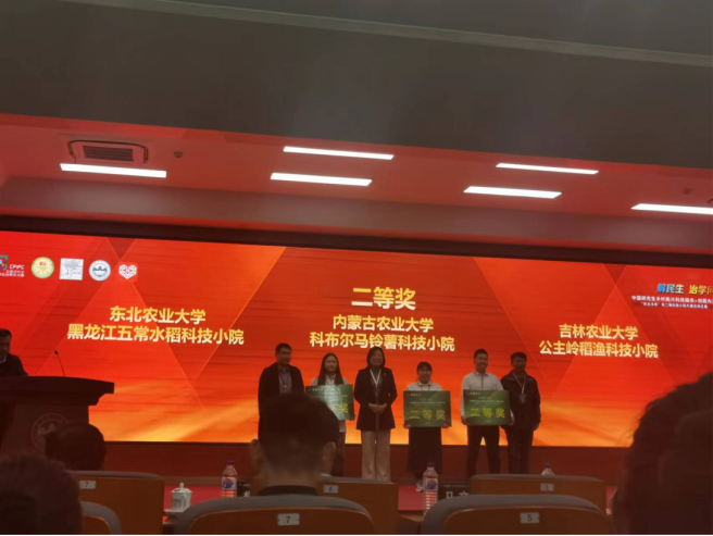 10月28日,中国研究生乡村振兴科技强农+创新大赛之“拼多多杯”第二届科技小院大赛吉林区赛在吉林举行。来自黑龙江、吉林、辽宁、内蒙古4省、自治区的16支科技小院队伍,通过现场路演答辩+线下成果展示,比拼乡村振兴的新思路、新成果。我院研究生队伍—五常水稻科技小院在此次比赛众多项目中脱颖而出,荣获二等奖,成功晋级全国总决赛。