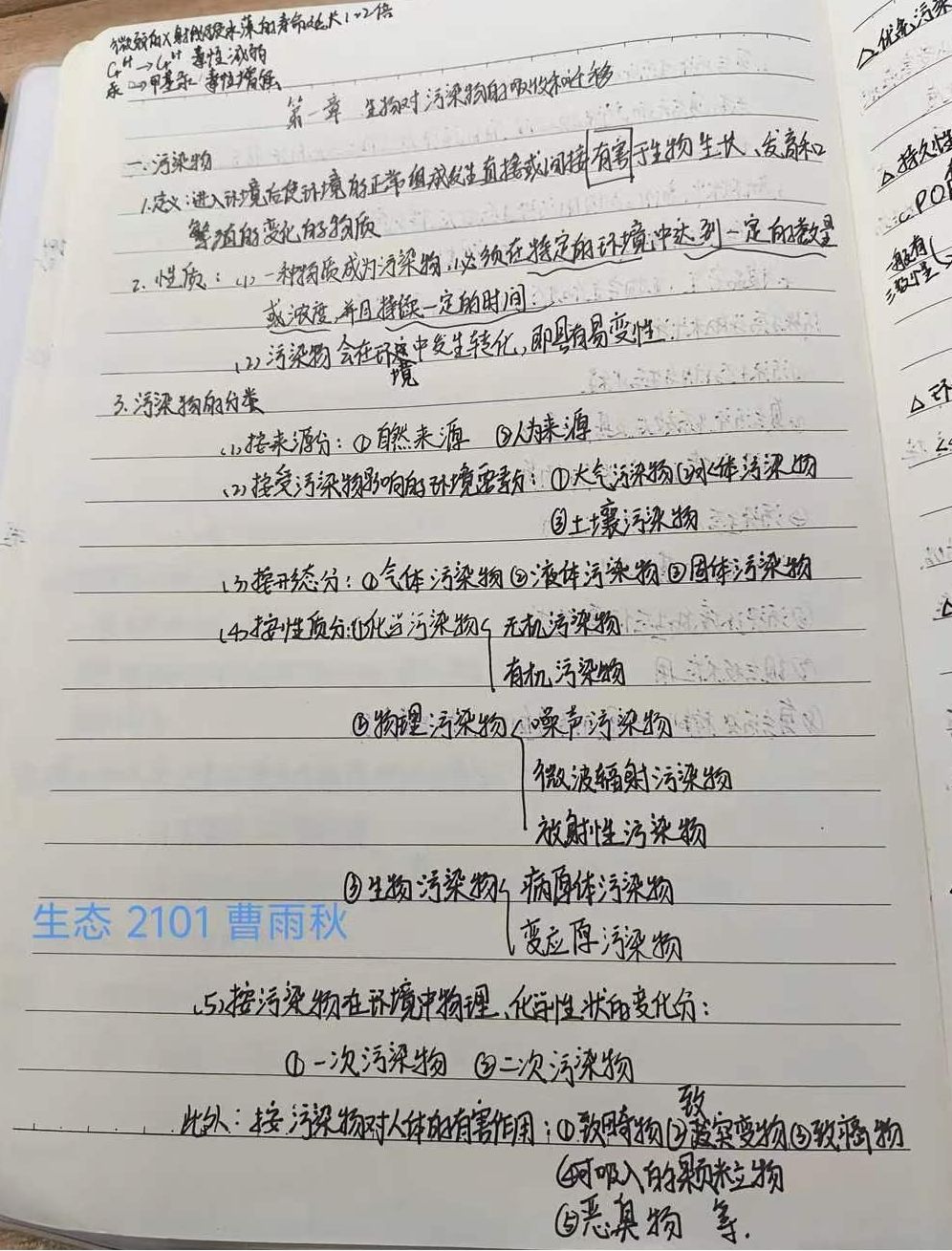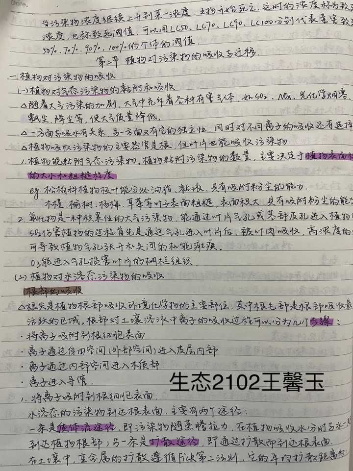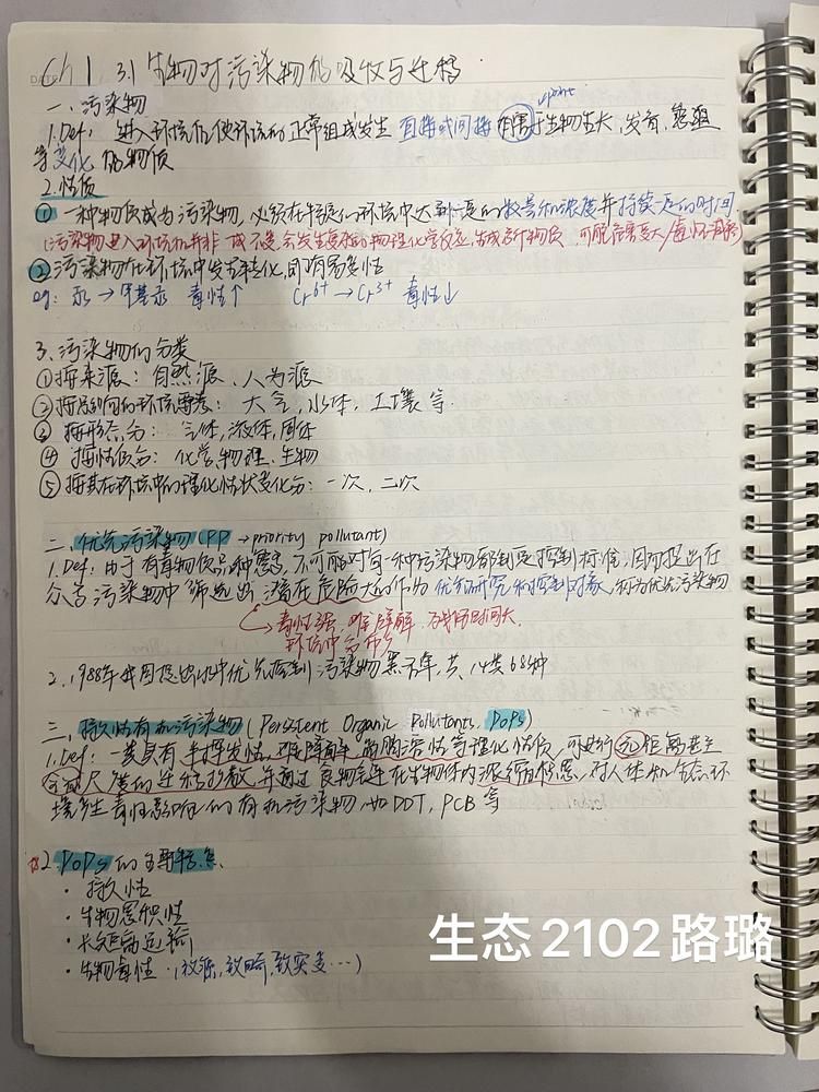 用笔记引领学习。3月12日第二期《污染生态学》线上学习笔记展示评选活动获得圆满成功!生态专业三年级本科生通过生生互评、教师评价相结合的方式,根据内容、形式、特色等综合评价,在所有同学的积极参与下,最终评选出优秀学习笔记16份,其中,李凌越、范睿成和周敬全三名同学的笔记以图文并茂、知识点直观性强、勤于思考获得前三名,程时同学的笔记应用最新技术,绘制详细的知识图谱,刘欣雨同学的多彩笔记、李浩铭同学的笔记字透纸背、知识点详实等等获得同学的一致认可。课堂上部分同学进行了学习笔记的心得分享,不仅锻炼了学生的分析、归纳能力,也助力同学学习方法的改进,突然的认可让同学窃喜不已,激发学习兴趣的同时展示自我的热情不断提高。