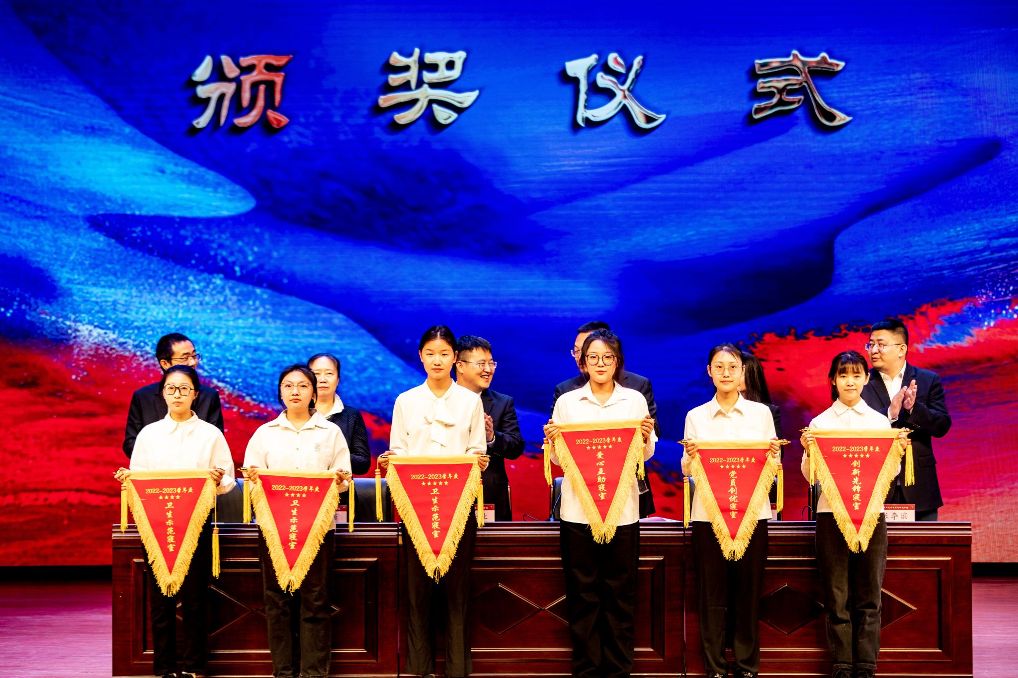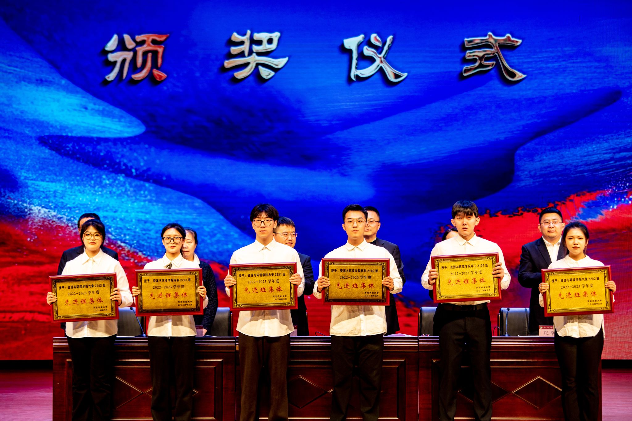 本次大会对2022-2023学年度在专业学习、社会工作、科技创新、社会实践等方面表现突出的先进集体和个人进行了表彰,与会领导分别宣读了《关于颁发2022—2023学年度本科生国家奖学金、国家励志奖学金的决定》《关于颁发2023年研究生国家奖学金的决定》《关于表彰2023年黑龙江省普通高等学校“三好学生”的决定》《关于颁发2022—2023学年度本科生单项奖学金的决定》《关于表彰2022—2023学年度本科生先进班集体、大学生年度人物(群体)的决定》《关于表彰2022-2023学年度星级文明寝室的决定》《关于表彰2022-2023学年度研究生先进班集体、优秀研究生、优秀研究生干部》等奖励决定,并为获奖集体和个人颁奖。
