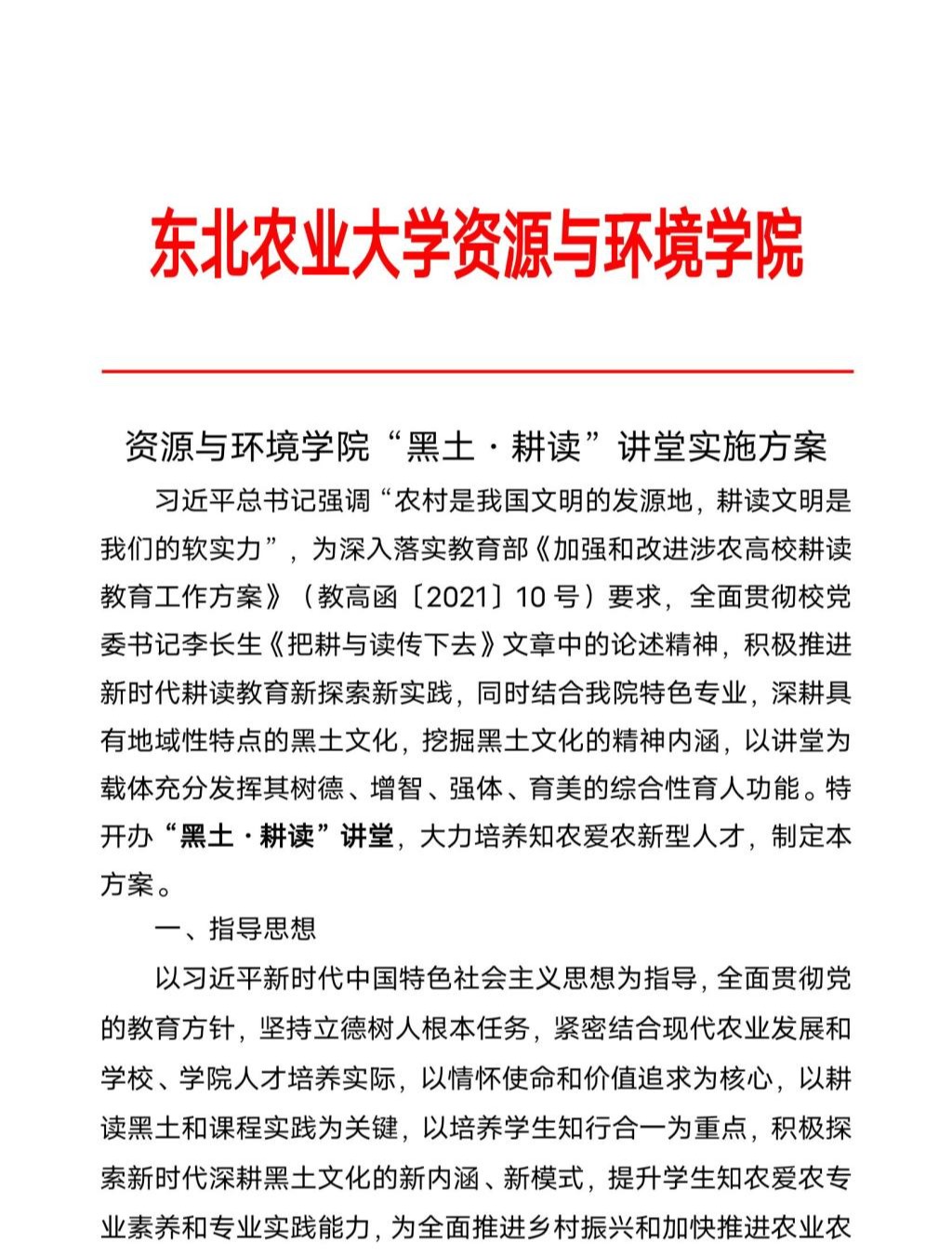 304am永利集团官网“黑土·耕读”讲堂实施方案