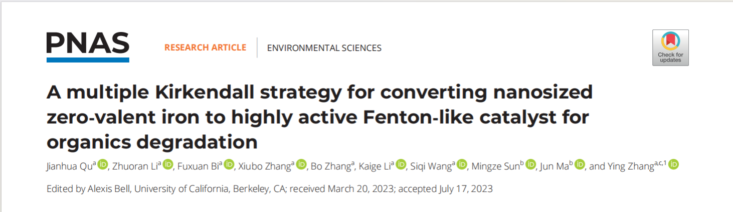 近日,我院张颖教授团队以自由投稿方式在国际顶级学术期刊《美国科学院院刊》(Proceedings of the National Academy of Sciences of the United States of America,PNAS)在线发表了题为《A multiple Kirkendall strategy for converting nanosized zero-valent iron to highly active Fenton-like catalyst for organics degradation》的研究论文。曲建华教授为第一作者,张颖教授为通讯作者。这是我校在《Proceedings of the National Academy of Sciences of the United States of America》期刊上首次以第一单位发表论文,取得了突破性创新。本研究基于多重Kirkendall效应对类芬顿催化剂进行了合理设计,解析了多重Kirkendall效应诱导纳米零价铁表面纳米裂纹形成机理,揭示了其对土-水界面典型有机污染物的高效降解机制。该研究得到了国家自然科学基金、中国科学院战略性先导科技专项、黑龙江省优秀青年基金的资助。