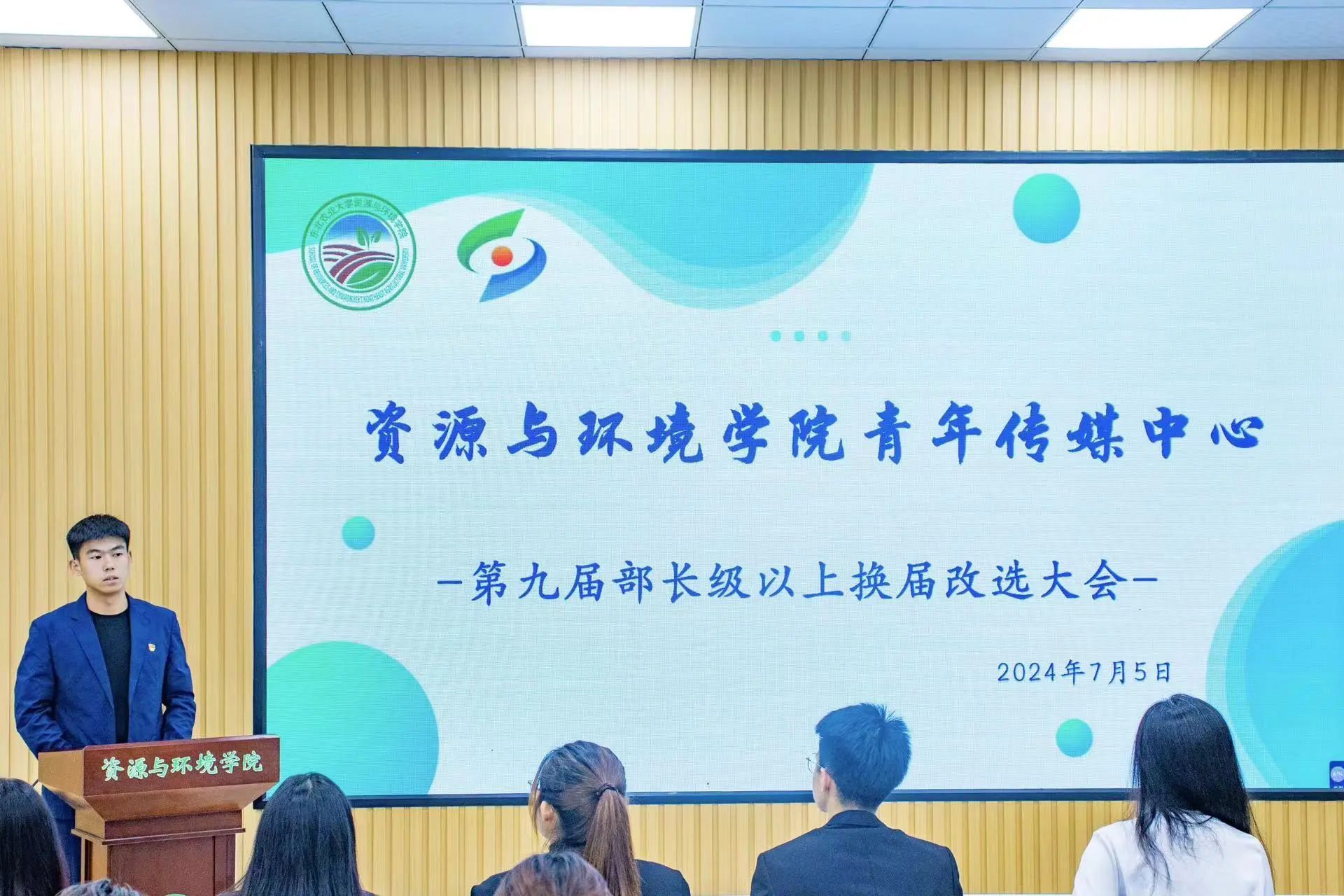 王彤致开幕词后,本次青年传媒中心及易班学生工作站部长级以上换届大会正式开始。
