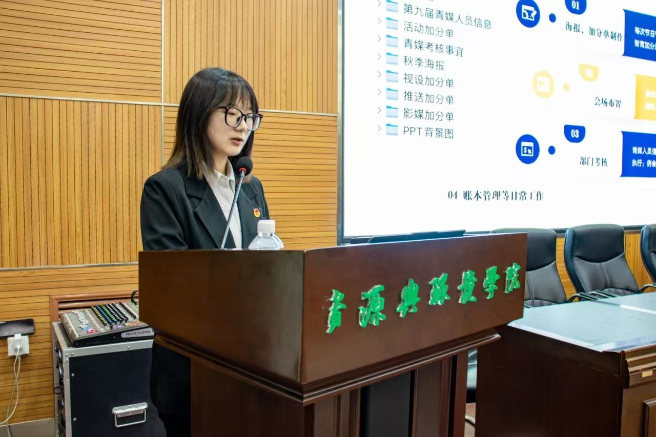 随着青年传媒中心组织成员的进一步扩大,为激发工作积极性并提高工作效率,由综合事务部部长徐紫晗讲解副部长、干事的考核标准与细则,强调作为青年传媒中心中的一员应有的责任。