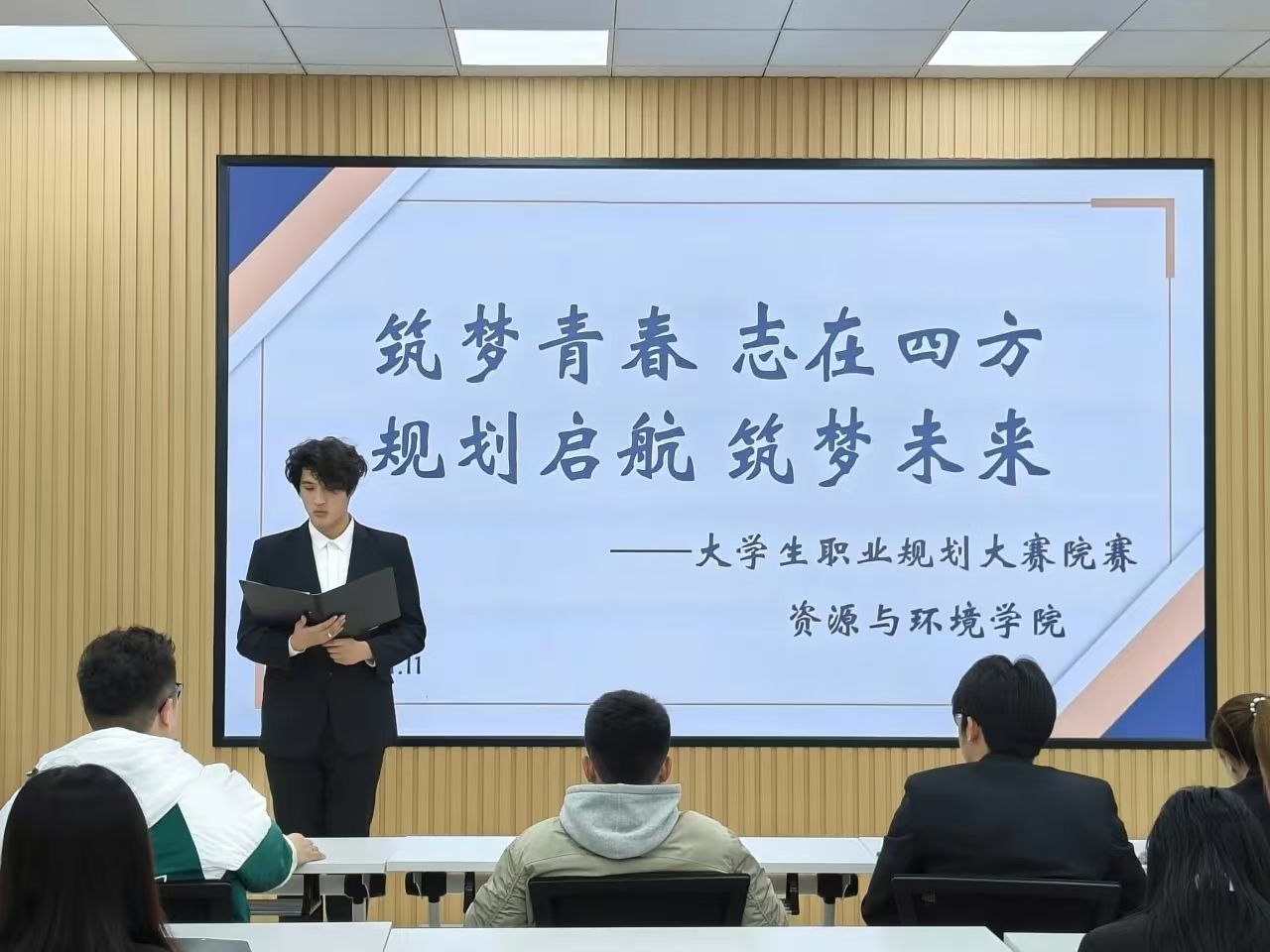 为增强大学生职业生涯规划意识,引导大学生树立正确的职业观念,提高职业素养和就业竞争优势,按照学校《关于举办第十三届东北农业大学大学生职业规划大赛的通知》要求。11月11日,学院在研究生楼741教室举办大学生职业生涯规划大赛,辅导员朱博文及学院各学生组织负责人担任评委。